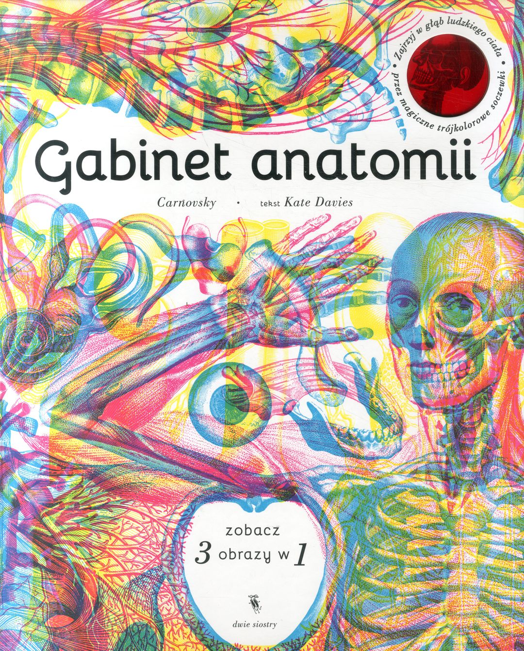 Efektowny album o ludzkim ciele zilustrowany za pomocą wyjątkowej techniki graficznej. Prześwietl ludzkie ciało od stóp do głów. Dowiedz się, jak serce pompuje krew, sprawdź, co się dzieje, kiedy oddychasz, policz kości w szkielecie i zajrzyj w głąb mózgu. Poznaj budowę i działanie najważniejszych części ciała w najbardziej zadziwiającym gabinecie anatomii pod słońcem. Dzięki specjalnej technice graficznej wykorzystanej przez włoski duet Carnovsky, każda z kolorowych ilustracji skrywa w sobie trzy „warstwy”. Obejrzysz je przez specjalne soczewki dołączone do książki. Przez czerwoną zobaczysz szkielet, przez zieloną - mięśnie, a przez niebieską - narządy wewnętrzne.