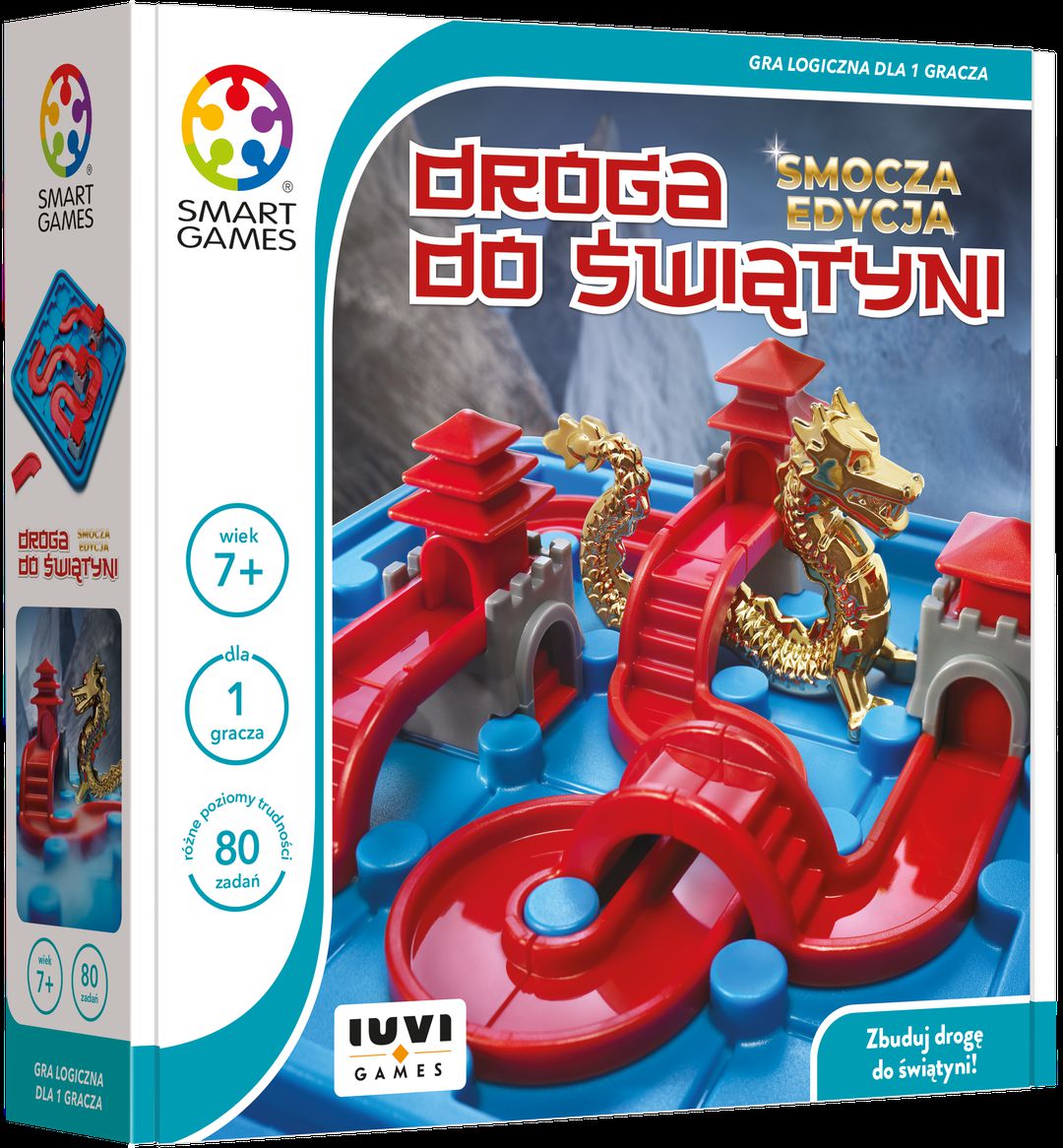 Droga do świątyni : smocza edycja / designer: Raf Peeters. - Kraków : Iuvi Games, 2022. - 1 pudełko (1 plansza, 1 figurka smoka, 10 plastikowych elementów, książeczka z 80 zadaniami, instrukcja) ; 24x25x6 cm.